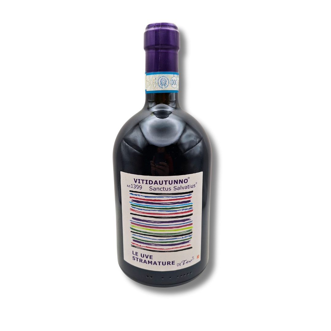 The VitidAutunno® Piemonte Barbera Passito by Cantine Teo Costa is the noble expression of the Barbera grape. Historic vineyards in Piemonte, soils rich in silica and calcareous tuff, hand-harvested over-ripe or slightly dried grapes, vinified in oak tubs with submerged cap and frequent punching down. The result is a wine with deep ruby and garnet hues, an aroma that is ethereal, intense and long-lasting, and a taste that is warm, velvety, vigorous, with spicy notes recalling ripe grapes. Designed for long ageing over 10 years, it is already ready to be enjoyed, ideally served at 13-15 °C.